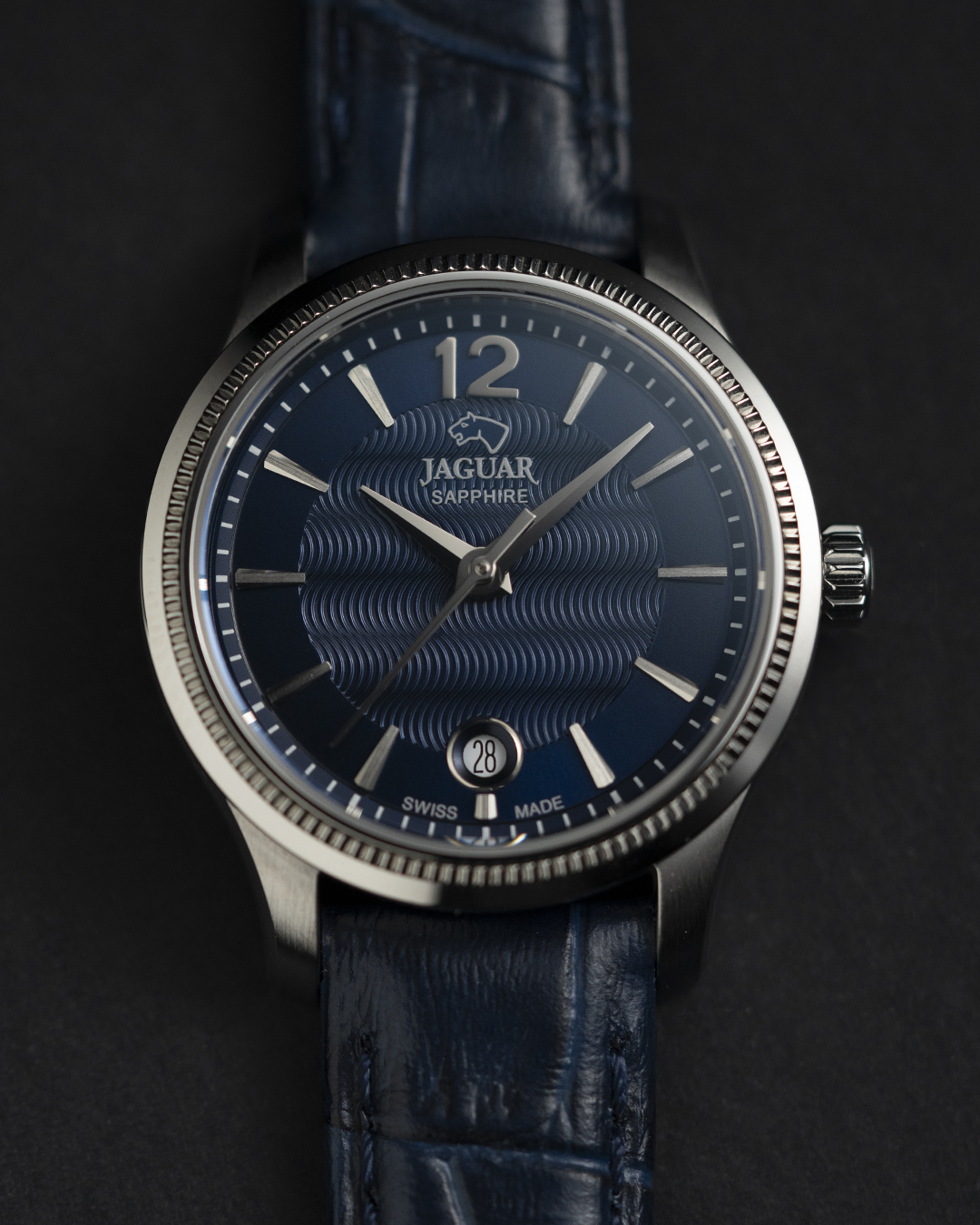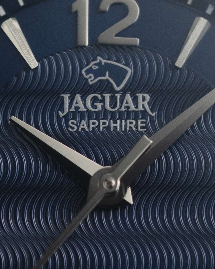 Jaguar Acamar J1046/3 jsou dámské elegantní bateriové hodinky na modrém koženém řemínku s motýlkovou sponou. Pouzdro z nerezové oceli má průměr 29 milimetrů. Modrý číselník s texturou vln a ukazatelem data na šesté hodině je chráněn odolným safírovým sklem. Pohon hodinek zajišťuje švýcarský quartzový strojek Harley 785. S vodotěsností 5 ATM jsou hodinky odolné proti dešti a při sprchování.