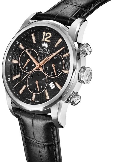 Jaguar Acamar J968/6 jsou pánské sportovně-elegantní bateriové hodinky na černém koženém řemínku s trnovou sponou. Pouzdro z nerezové oceli má průměr 42 milimetrů. Černý texturovaný číselník se stopkami a indikací data je chráněn odolným safírovým sklem. Ručičky disponují luminiscenční vrstvou, která po nasvícení usnadňuje čitelnost za zhoršených světelných podmínek. Pohon hodinek zajišťuje švýcarský quartzový strojek Ronda 5030D. S vodotěsností 5 ATM jsou hodinky odolné proti dešti a při sprchování.
