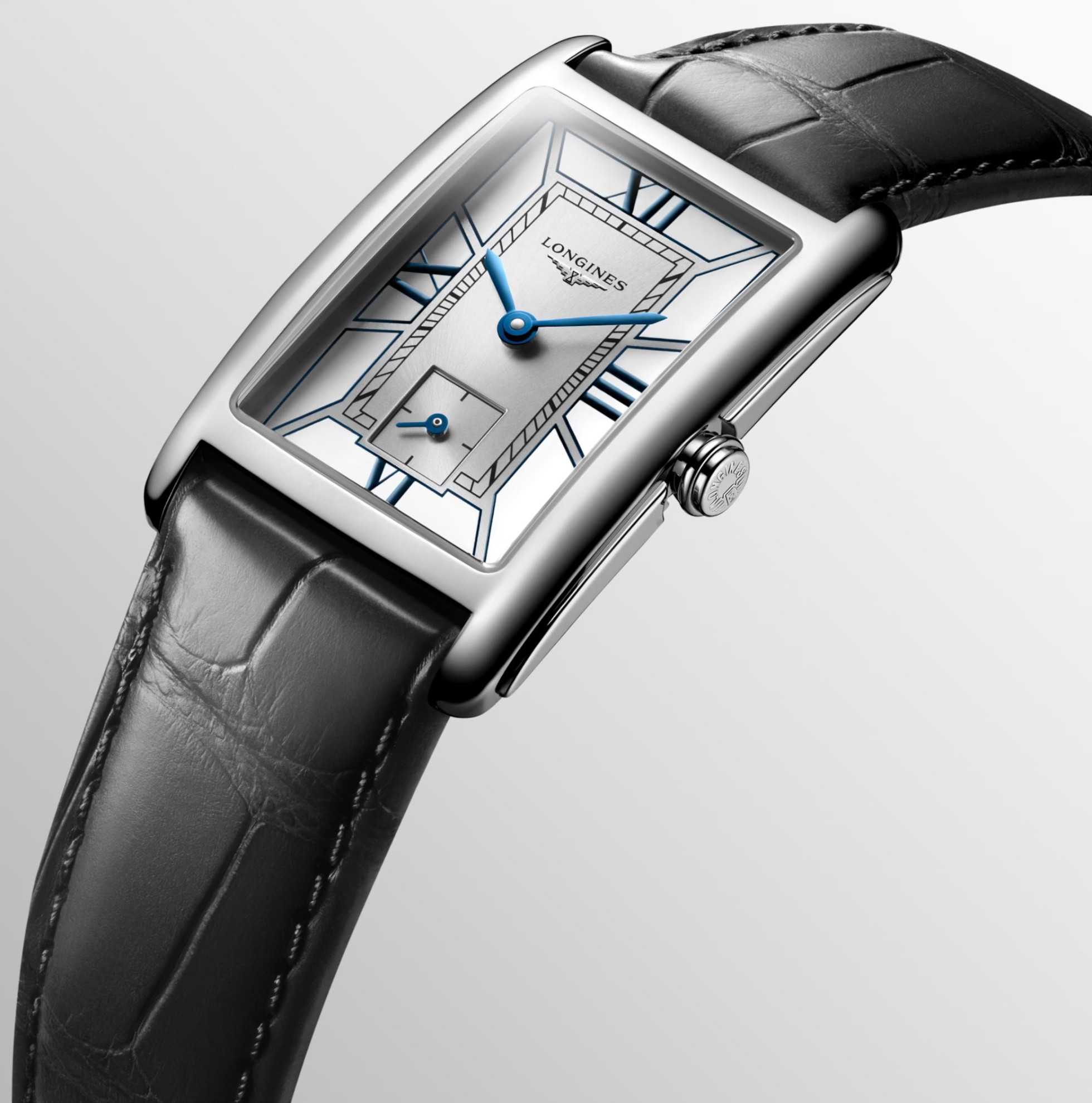 Longines DolceVita L5.512.4.75.2 jsou dámské bateriové elegantní hodinky na šedém řemínku z aligátoří kůže s trnovou sponou. Pouzdro z nerezové oceli má velikost 23,3 x 37 milimetrů. Stříbrný číselník s mimostřednou sekundovou ručkou je chráněn odolným safírovým sklem. Chod hodinek zajišťuje bateriový strojek L176 s indikátorem slabé baterie. S vodotěsností 3 ATM jsou hodinky odolné proti dešti a při mytí rukou.