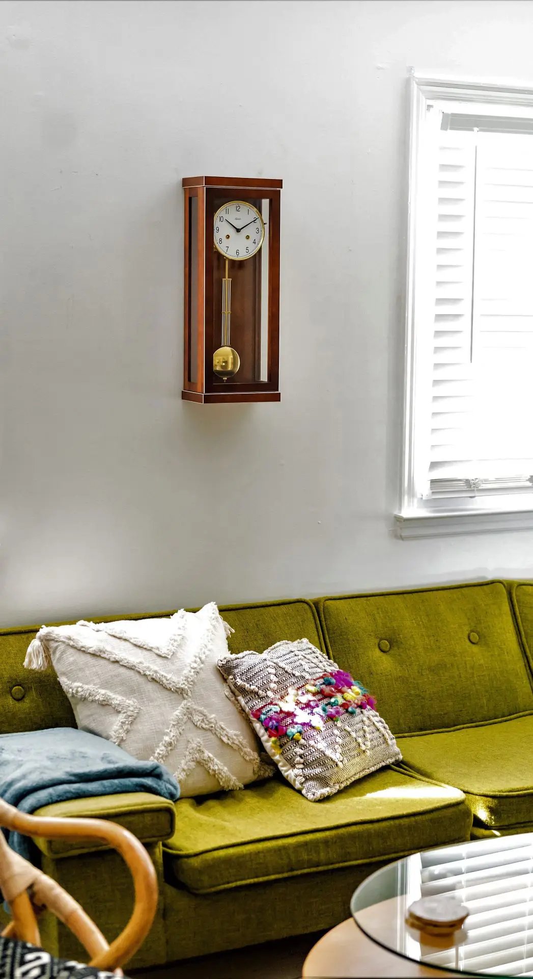 Německé nástěnné hodiny odehrají ve čtvrt 1x, v půl 2x, ve tři čtvrtě 3x a v celou 4x melodii Westminster a k tomu v celou odbijí daný počet hodin. Mechanický čtvrťový strojek s osmidenní rezervou chodu je chráněn masivním dřevěným ořechovým pouzdrem s barevně odlišnými hranami, s předním a bočním sklem. Hodiny mají mřížkové kyvadlo a disponují funkcí automatického nočního vypnutí odbíjení v čase 21:45 - 7:00 hodin, ostatní odbíjení lze vypnout ručně.