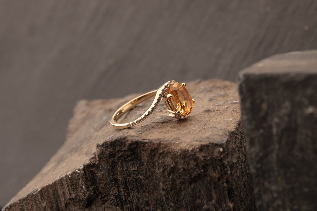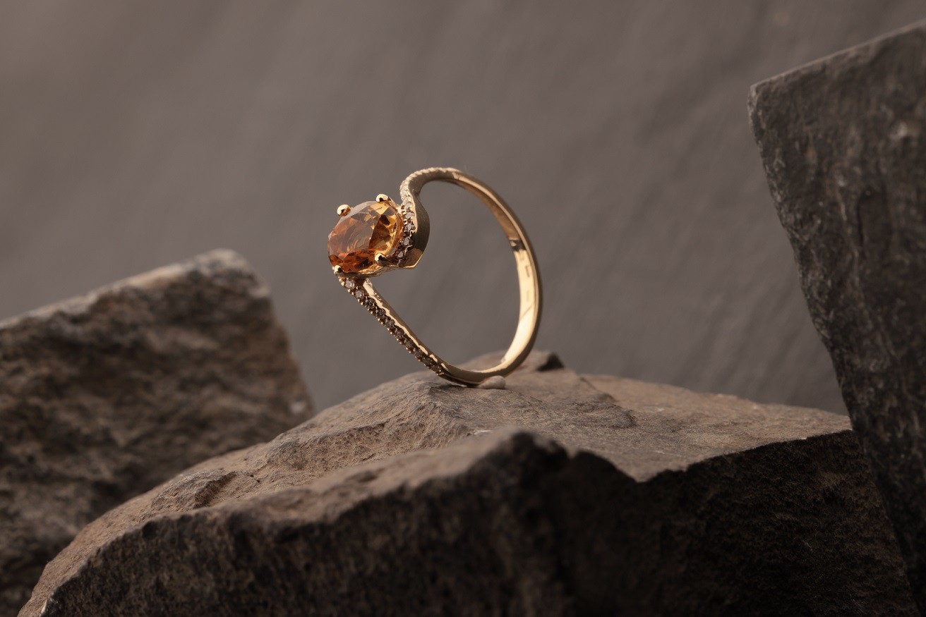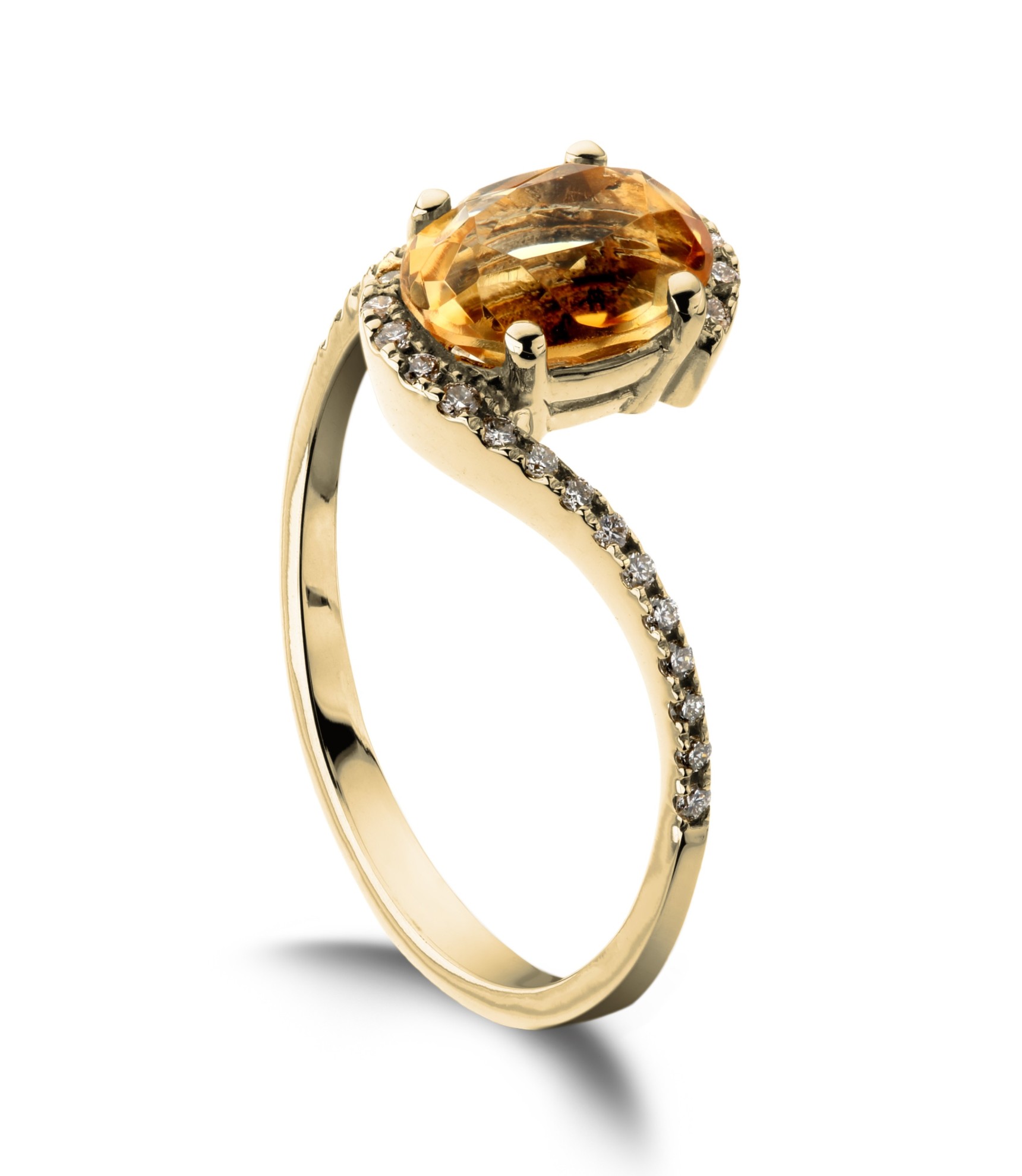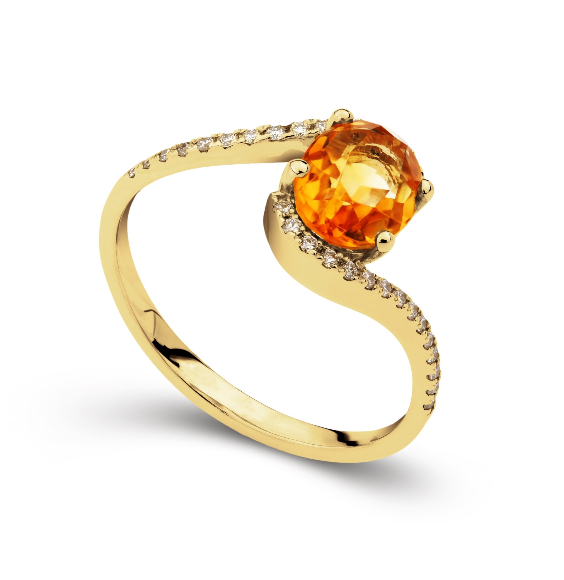 Prsten LOEE ze žlutého zlata s diamanty a citrínem R1Y0151B..CI