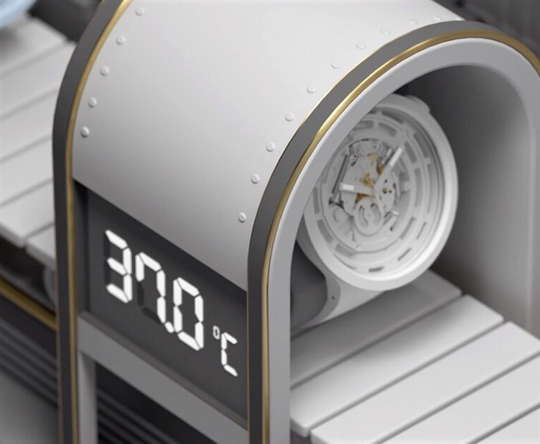 Materiál pouzdra hodinek je kombinace keramiky a plastu s biologickým původem.