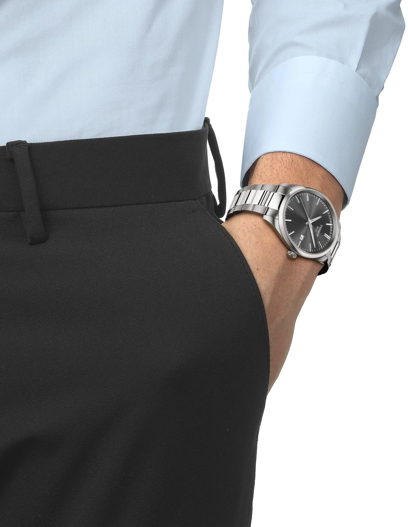 Tissot PR 100 T150.410.11.081.00 jsou pánské bateriové hodinky v klasickém stylu na ocelovém náramku v kombinaci brusu a lesku a motýlkovou sponou. Pouzdro z nerezové oceli má průměr 40 milimetrů. Přehledný šedý číselník s efektem slunečního brusu a ukazatelem data na třetí hodině je chráněn odolným safírovým sklem. Ručičky a indexy jsou potaženy luminiscenčním nátěrem Super-LumiNova®, který garantuje perfektní čitelnost za zhoršených světelných podmínek. Pohon hodinek zajišťuje quartzový strojek ETA F06.115 s funkcí indikace slabé baterie. S vodotěsností 10 ATM jsou hodinky vhodné pro plavání či šnorchlování.